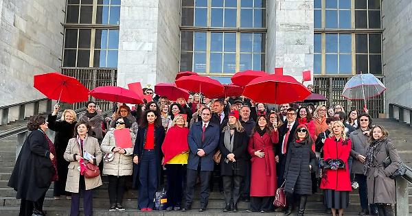 L’iniziativa organizzata oggi dall’Ordine degli Avvocati di Milano e dal Comitato Pari Opportunità dell’Ordine degli Avvocati di Milano sulla scalinata del Palazzo di Giustizia in vista del 25 novembre