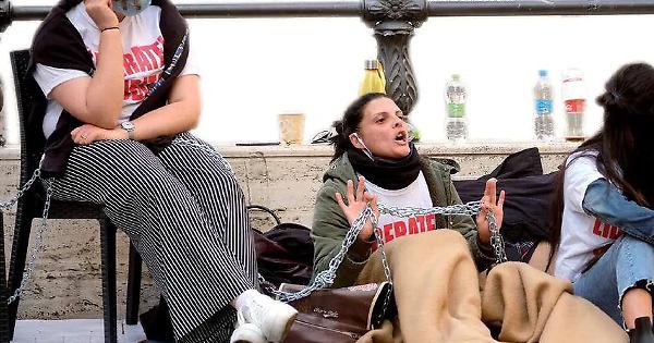 IN UN’IMMAGINE D’ARCHIVIO I PARENTI DEI MARITTIMI DI MAZARA DEL VALLO, SI SONO INCATENATI DAVANTI ALLA CAMERA DEI DEPUTATI