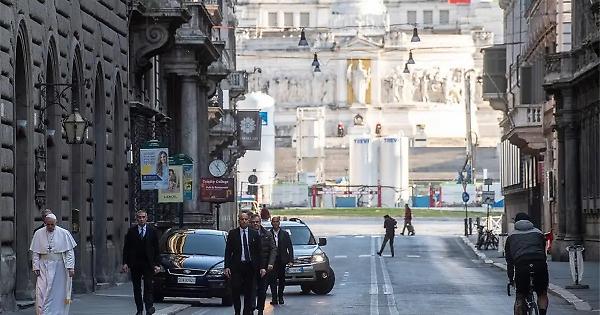Una gesto storico, uno scatto che rimarrà nella storia. Potente come quello di Pio XI che il 19 luglio 1943 alzò le braccia al cielo tra la folla del quartiere san Lorenzo, appena bombardato. E così papa Francesco ha lasciato il Vaticano in forma privata e si è recato in visita alla Basilica di Santa Maria Maggiore, per rivolgere una preghiera alla Vergine, Salus populi Romani. “Successivamente, facendo un tratto di Via del Corso a piedi, come in pellegrinaggio, il Santo Padre ha raggiunto la chiesa di San Marcello al Corso” per pregare per “la fine della pandemia”. Papa Francesco è andato prima a Santa Maria Maggiore poi, percorrendo anche un tratto a piedi nella chiesa di San Marcello al Corso, dove si trova il Crocifisso miracoloso che nel 1522 venne portato in processione per i quartieri della città perché finisse la "Grande Peste" a Roma. “Con la sua preghiera – riferisce il portavoce vaticano Matteo Bruni -, il Santo Padre ha invocato la fine della pandemia che colpisce l’Italia e il mondo, implorato la guarigione per i tanti malati, ricordato le tante vittime di questi giorni, e chiesto che i loro familiari e amici trovino consolazione e conforto. La sua intenzione si e’ rivolta anche agli operatori sanitari, ai medici, agli infermieri, e a quanti in questi giorni, con il loro lavoro, garantiscono il funzionamento della società”. Papa Francesco in questa terza domenica di Quaresima, uscendo dal Vaticano, ha voluto sottolineare la sua vicinanza a chi soffre andando a implorare la speciale protezione della Madonna che si venera nell’icona conservata nella basilica di Santa Maria Maggiore, prima tappa delle sue due visite romane. Il Pontefice e’ rientrato in Vaticano verso le 17.30.