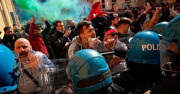 Ristoratori che protestano davanti a Montecitorio a Roma, fino ad arrivare alla scontro fisico con le forze dell’ordine in tenuta antisommossa, e che inscenano proteste anche a sud, davanti alla Prefettura di Vibo Valentia. Ambulanti e mercatali che manifestano a Milano, davanti alla stazione centrale e poi danno vita ad un corteo che arriva dinanzi alla Prefettura del capoluogo lombardo; altre manifestazioni a Torino davanti al tribunale. Altre ancora che arrivano a bloccare, in Campania, il tratto di autostrada A1 Milano-Napoli all’altezza di Marcianise, in provincia di Caserta. Da nord a sud va in scena la protesta di chi, ristoratori, commercianti ambulanti o dei mercati, ormai non ce la fa più ad andare avanti, con le restrizioni per combattere l’epidemia di Covid-19 che, da oltre un anno, hanno ridotto all’osso se non azzerato l’attività, e quindi il fatturato. A Roma, davanti al palazzo della Camera dei deputati, non sono mancati i momenti di tensione per la protesta dei ristoratori. Sono stati lanciati alcuni oggetti. I manifestanti, molti senza mascherina, sono stati trattenuti dai poliziotti in tenuta anti sommossa. I ristoratori chiedono di poter riaprire, oltre a ricevere i ristori per i periodi di chiusura. I manifestanti hanno lanciato diversi oggetti, e addirittura anche un fumogeno, contro le forze dell’ordine, schierate per controllare che la situazione non degeneri. Dopo ore di protesta, di attesa, una delegazione dei manifestanti di estrema destra ha avuto accesso all’aula dei gruppi parlamentari della Camera dove è stata ricevuta dai deputati del Pd, Emanuele Fiano e Filippo Sensi. I parlamentari dem si sono impegnati a portare all’attenzione del governo alcuni punti che sono stati oggetti del confronto come le questioni della moratoria sui debiti, degli indennizzi e delle riaperture. Da parte loro, e di tutte le forze politiche, è arrivato invece il netto rifiuto alla violenza. «È inammissibile qualsiasi comportamento violento nei confronti di chi è impegnato a difendere la legalità e la sicurezza», le parole del ministro dell’Interno, Luciana Lamorgese, che sottolinea come le forze dell’ordine stiano «operando con grande professionalità, equilibrio e senso di responsabilità di fronte all’evidente disagio delle categorie economiche più colpite dalla grave crisi innescata dalla pandemia che merita la doverosa attenzione del Governo». Il bilancio della giornata di tensione nel cuore della capitale è contenuto: almeno due poliziotti feriti e portati in ospedale, uno dei quali medicato precedentemente al presidio di Palazzo Chigi. Tra i manifestanti, alcune persone sono state identificate dalla polizia. Una donna ha avuto un malore ed è stato necessario l’arrivo di un’ambulanza. Più a sud, in provincia di Caserta, la protesta dei mercatali ha dato vita ad un vero e proprio blocco stradale: interrotta la circolazione sulla A1, con gravi disagi per il traffico, bloccato per chilometri. Ma le proteste hanno di fatto costellato tutta la penisola fotografando il disagio sociale da nord a sud.