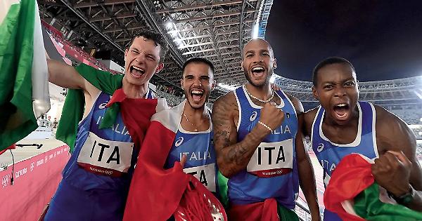 Da vincitore dei 100 metri piani Jacobs è il più atteso, e non delude. Corre la sua frazione staccando gli altri corridori, e quando al suo fianco i giapponesi steccano il cambio lui rimane tranquillo e passa senza problemi il testimone a Fausto Desalu, italianissimo di Casalmaggiore che corre, corre, corre e poi urla a squarciagola «vaiiii» subito dopo aver lanciato Filippo Tortu, brianzolo di padre sardo cui spetta il compito decisivo. «Sta per succedere una cosa», pronostica Franco Bragagna, leggendario telecronista della Rai che abbiamo imparato a conoscere nelle nottate insonni a seguire le imprese dei nostri atleti nella terra del Sol Levante.