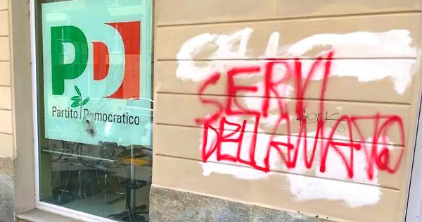 A Torino imbrattata la sede del Partito democratico. «Servi della Nato»