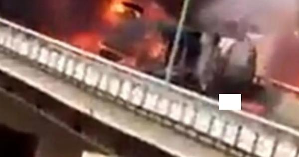 Il veicolo ha preso fuoco in seguito alla collisione con le barriere di sicurezza stradale su un ponte all'altezza di Aqabat Shaar