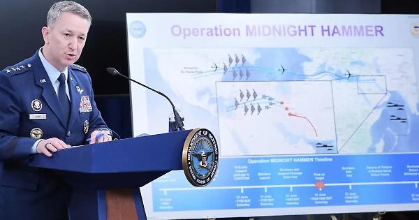 È il generale Dan Caine, capo degli Stati maggiori riuniti, a illustrare l'Operazione Martello di Mezzanotte con cui gli Stati Uniti hanno colpito i siti nucleari di Fordow, Natanz e Isfahan. Al Pentagono, con il segretario Pete Hegseth, Caine indica i passaggi chiave dell'operazione che ha coinvolto sette bombardieri B-2 - con 14 bombe GBU sganciate - e sottomarini che hanno lanciato missili Tomahawk. Si è trattato dell'attacco più grande mai condotto con i B-2, che hanno fatto il loro volo più lungo dal 2001, e per il quale è stato usato un numero record di “bunker buster”.