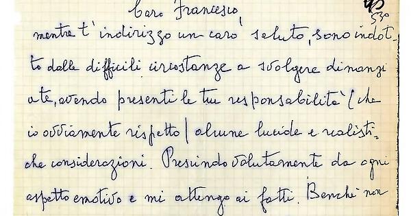 «Caro Francesco... in verità siamo tutti noi del gruppo dirigente che siamo chiamati in causa ed è il nostro operato collettivo che è sotto accusa e di cui devo rispondere»