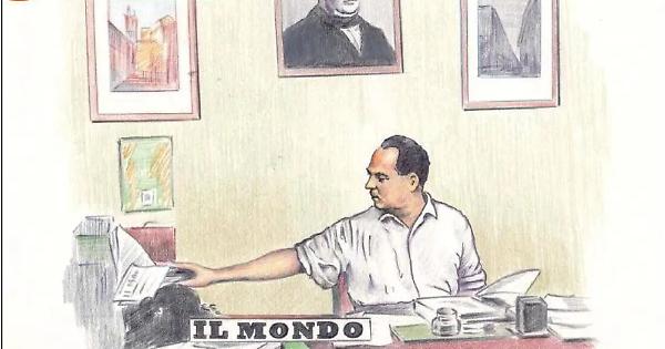 Sulla destra della sala c’erano le scrivanie dell’esile, elegante Nina Ruffini, di Lily Marx con in bocca l’eterna sigaretta le cui ceneri veniano consegnate a un graziosissimo portacenere portatile, di Giulia Massari. Tra le loro scrivanie si aprivano le porte dello studio di Ernesto Rossi - un privilegio! - che vi arrivava sempre carico di una borsa gonfia di carte e documenti, e di quello di Pannunzio. Io vi fui ammesso un paio di volte, quando il direttore volle personalmente affidarmi il tema di un articolo o quando, volendo pubblicare nello stesso numero due miei pezzi, mi chiese uno pseudonimo. Mi riceveva in piedi, accanto alla scrivania e sotto un grande ritratto di Cavour. Notai, un po’ stupito, che attorno al collo e pendente sul petto aveva uno spago, che gli serviva per misurare la lunghezza degli articoli.