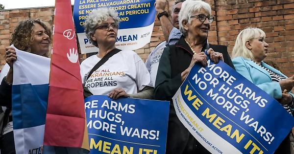 Sono passati poco meno di otto mesi dall’invasione russa e oggi la comunità ucraina in Italia è tornata a manifestare a pochi passi dall’ambasciata di Mosca a Roma per chiedere la pace attraverso il ritiro delle truppe di Putin dal territorio di Kiev. Una pace “giusta”, dunque, che non passi per la resa dell’Ucraina e che restituisca al paese del presidente Zelensky i territori così com’erano prima del 2014. Alla manifestazione, organizzata dal Movimento europeo di azione nonviolenta, il cui portavoce Angelo Moretti ne ha spiegato i motivi. «Occorre ristabilire la verità, visto che nell’ultimo periodo si fanno troppi distinguo - ha detto Moretti - C’è un aggressore, che è la Federazione russa, e un aggredito, che è l’Ucraina: qualsiasi discorso sulla pace deve partire da qui». C’è Fatima, una dissidente russa nata in Ossezia del Nord ma che da anni vive in Italia e che urla tutta la sua contrarietà al regime di Mosca con un cartello con su scritto: «Putin togli le mani dall’Ucraina». Ci sono donne e bambini, giovani e vecchi che chiedono pace per le proprie comunità e indipendenza per il proprio paese. C’è Ludmyla, da vent’anni in Italia, con una bandiera sulle spalle. E c’è Viktor, che ha amici al fronte e cerca di sostenersi intonando l’inno ucraino. E ci sono le associazioni e la politica, venuta a testimoniare la propria vicinanza al popolo aggredito. O meglio, una parte della politica. C’è il Pd al gran completo, dal segretario Enrico Letta alle due capogruppo di Camera e Senato, Deborah Serracchiani e Simona Malpezzi. C’è Azione, con Carlo Calenda e Maria Stella Gelmini. E c’è +Europa, con Emma Bonino e Benedetto Della Vedova. Ci sono Marco Bentivogli e Pier Ferdinando Casini, Gianni Cuperlo e Laura Boldrini. «Noi partecipiamo a tutte le manifestazioni che vogliono la fine della guerra e che non siano equidistanti - ha detto Letta - Tutte le manifestazioni che dicano con chiarezza c'è un aggredito, che è il popolo ucraino, e c'è un aggressore: la Russia». E se per Emma Bonino «Putin prima o poi deve essere trasferito a L’Aia», secondo Calenda «non può esserci pace senza libertà e non si può arrivare alla pace con la capitolazione di una delle due parti». Cioè con la resa di Kiev. D’accodo Bentivogli, secondo il quale «serve la pace ma che sia una pace giusta». L’intento del Mean, sottolinea Moretti, è quello di far sentire la propria voce direttamente in Ucraina, stando al fianco di quel popolo come in occasione della marcia per la pace organizzata a Kiev a luglio. «Tra due settimane saremo a Leopoli e poi forse a Odessa», scandisce il portavoce. E mentre la sera scende su castro pretorio, a pochi metri dall’ambasciata russa a Roma, le bandiere gialle e blu di Kiev continuano a sventolare e chiedere soltanto una cosa: «pace».