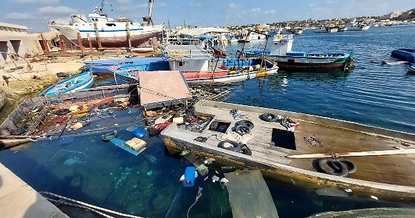 Sul molo Favarolo, l'attracco consueto per barchini e motovedette cariche di storie recuperate in mare, ora splende il sole, dopo giorni di vento e pioggia. Per gli uomini della Guardia costiera, insolitamente a “riposo” nella baia, la clemenza del mare annuncia solo una cosa: gli sbarchi riprenderanno a breve, già nella notte probabilmente. Il molo per ora è popolato di imbarcazioni turistiche, ma solo dieci giorni fa non si riusciva a vedere l'acqua: 128 barchini - quasi tutti di “latta” assemblata alla meno peggio con colla e siliconi - arrivati quasi contemporaneamente coprivano l'intera superficie del porto. A testimonianza di quell'esodo resta solo qualche relitto semiaffondato ma ancora zeppo di vita: maglie, scarpe, guanti, sacchetti, pneumatici come salvagenti e bottiglie di plastica appartenuti a chi quella notte è riuscito ad arrivare vivo in Europa.